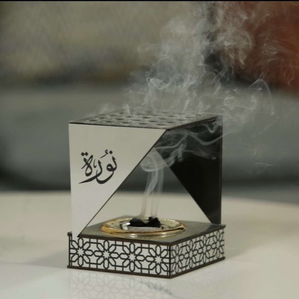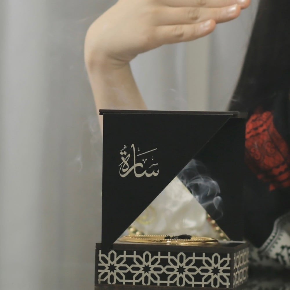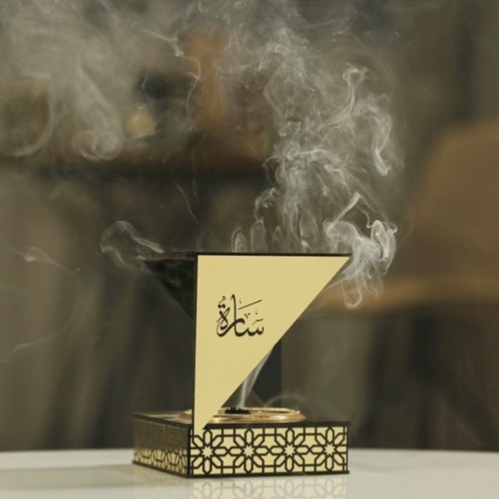 يتم وضع الاسم و الحرف المطلوب من الأكريليك الفضي اللامع.