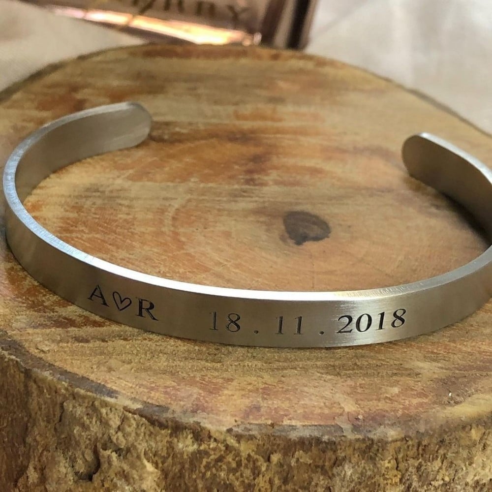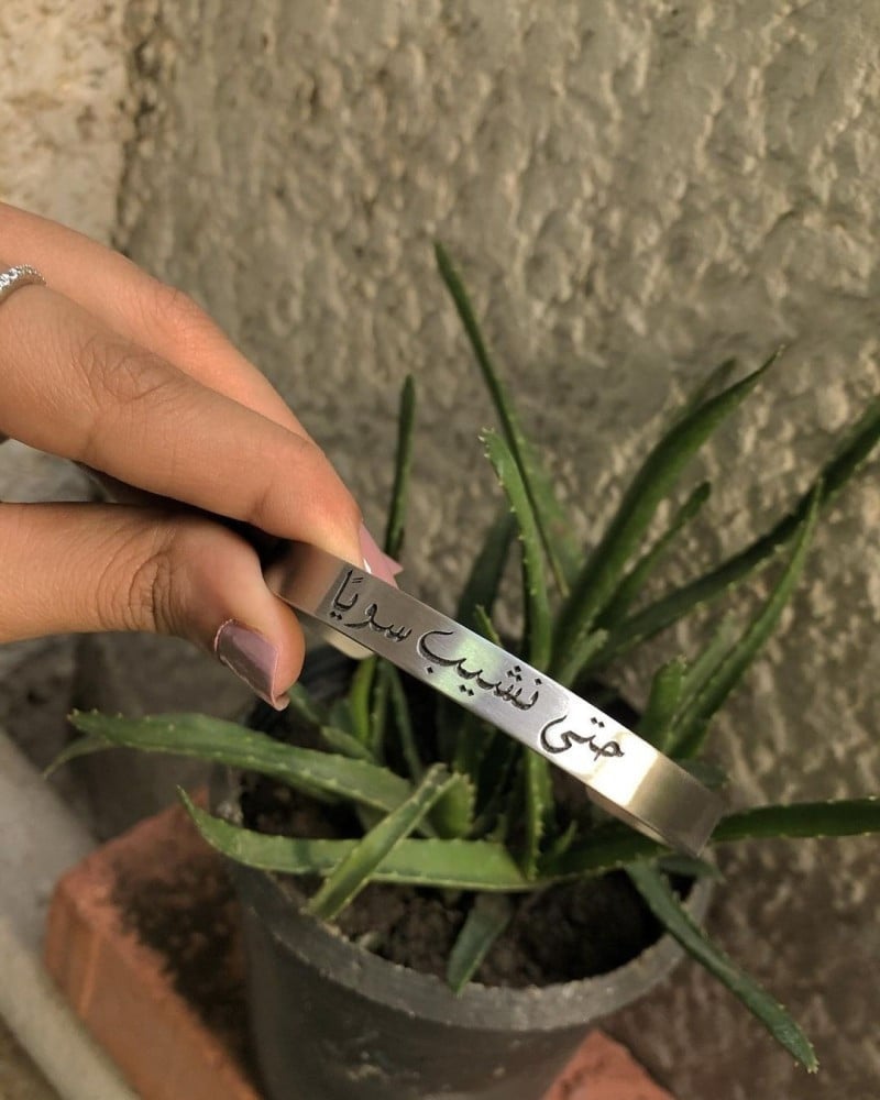 تفاصيل المنتج:مطلي ذهب او فضة.متوفر اللون ذهبي او فضي حسب رغبتك.الخط بلون اسودصيانه مجانيه 100%مقاس الاسورة وسط وبأماكنك التحكم في المقاس تضييقه او توسيعه.نكتب على الاسورة حسب الطلب.موقعنا الرياض ونوصل لجميع مدن المملكة.
